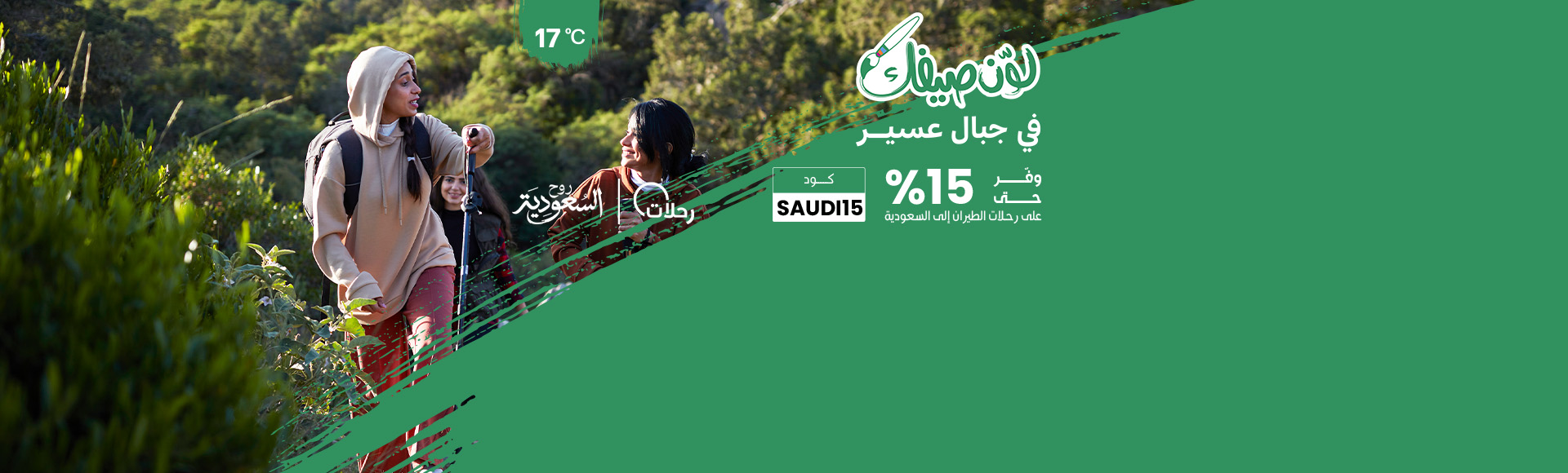 استخدم الكود: SAUDI15 واحصل على خصم حتى ١٥% على رحلات الطيران الدولية.
